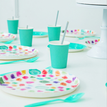 Tiffany Azul Fontes Do Partido Pratos de Jantar Pratos De Papel para o Partido de Aniversário Dos Miúdos de Palha Copos Talheres Colher Faca Garfo para 8 gusets